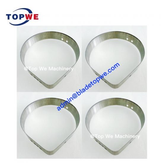 This bended and welded can be made with one side teeth or double sides teeth, shapes like circular, square, heart or OEM. The welded serrated blade can satisfy customized packaging cutting requirements.